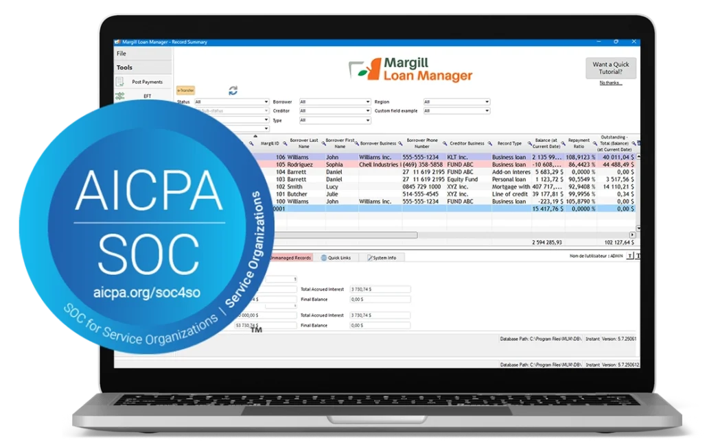 Margill products are used in over 50 countries by thousands of professionals and organizations, including the U.S. Securities and Exchange Commission (SEC), Toyota USA, Department of Justice Canada, SBA Bank, Manulife Financial, Norton Rose to name a few…. Margill Loan Manager Cloud is now SOC2 compliant.