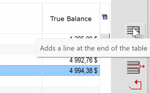 Now I want to calculate the interest until August 22. I had forgotten to add a fee of $222.22 on July 7 so I will add it here. Use the icons on the right or the right mouse click: