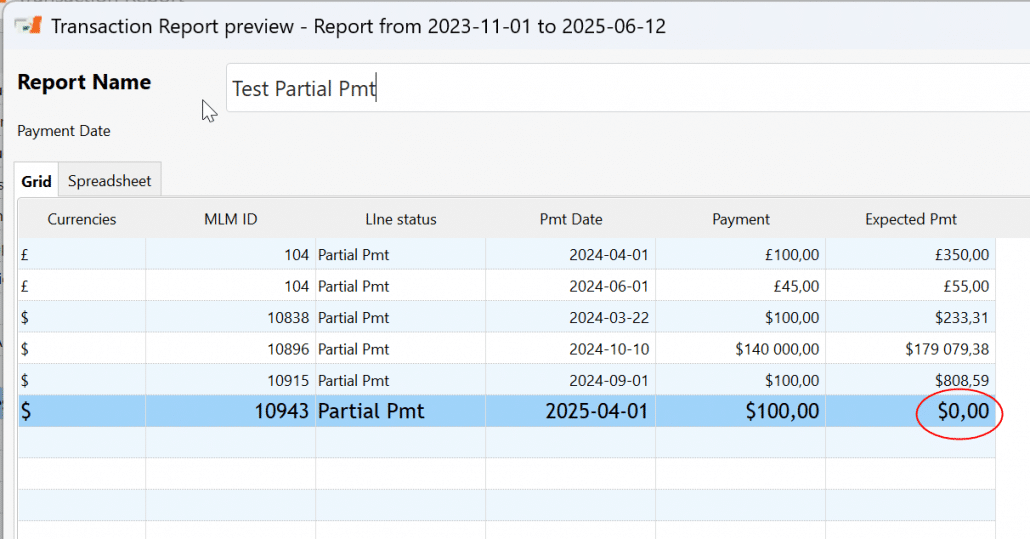 Q: How can I find if I have an amount of 0.00 in the Expected Pmt column for Partial Payments – in the Margill Loan Manager Payment schedule?