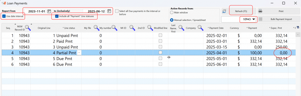In the Post Payment tool select the date interval and check the circled options below. Then press Refresh.