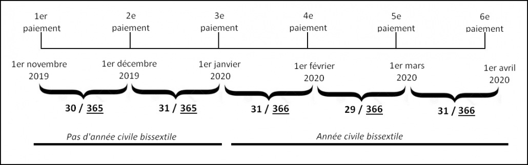 Évidemment, le calcul devient légèrement plus complexe lorsqu’on a des périodes qui ne sont pas complètes.