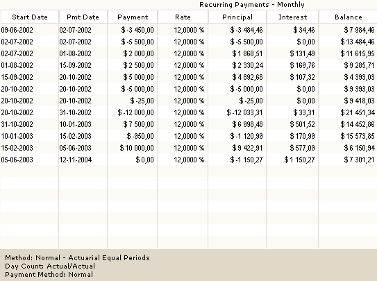 In cases where the debtor can only refund the back taxes through regular (or irregular) payments, Margill can easily create a schedule at fixed or variable interest rates. As time goes on, the schedule can be updated to reflect interest rate changes, missed payments, and all other types of payment events. See Late / unpaid accounts receivable with regular or irregular payments made by the debtor above.